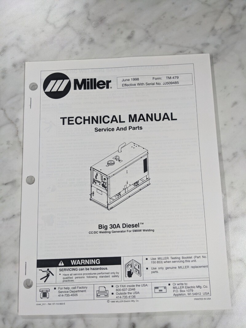 Miller Welder Techinical Service Manual Parts List Big 30A Diesel Tm-479 1998