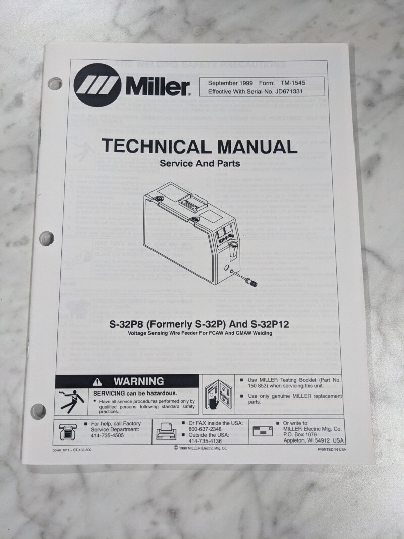 Miller Welder Techinical Service Manual Parts List Book S-32P8 P12 Tm-1545 1999