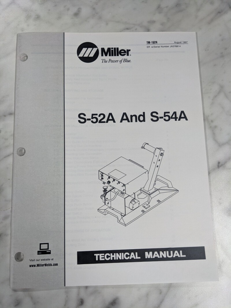 Miller Welder Techinical Service Manual Parts List Book S-51A S-54A Tm-1524 1997