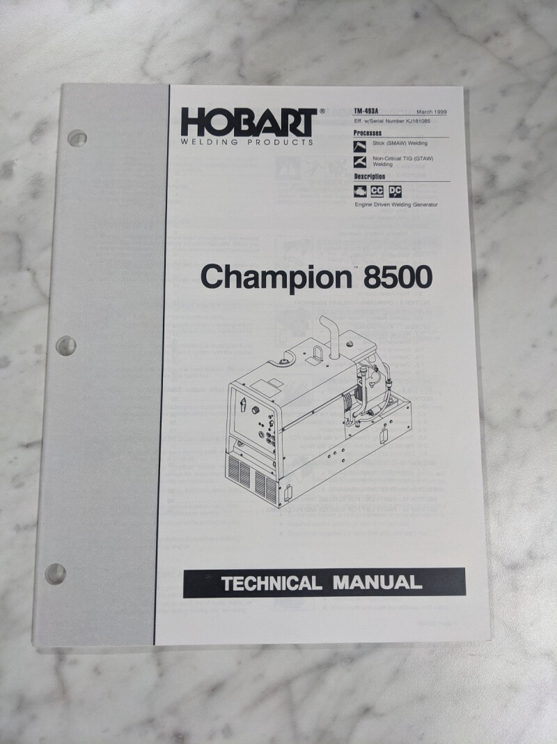Miller Welder Techinical Service Manual Parts List Champion 8500 Tm-493A 1999