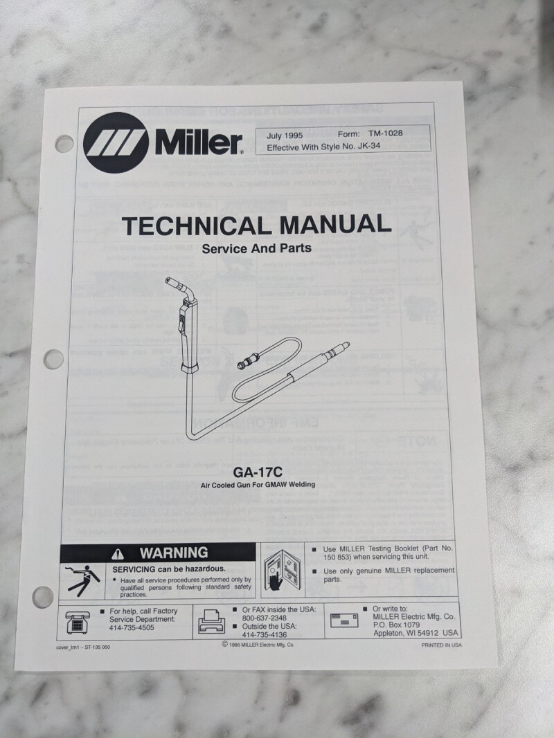 Miller Welder Techinical Service Manual Parts List Ga-17C Gmaw Gun Tm-1028 1995