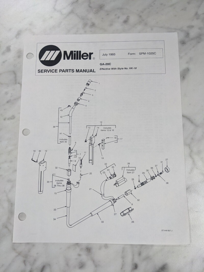 Miller Welder Techinical Service Manual Parts List Ga-20C Spm-1025C 1993 Gun