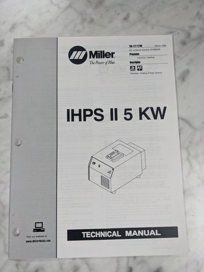 Miller Welder Techinical Service Manual Parts List Ihps Ii 5 Kw Tm-177 274B 1998