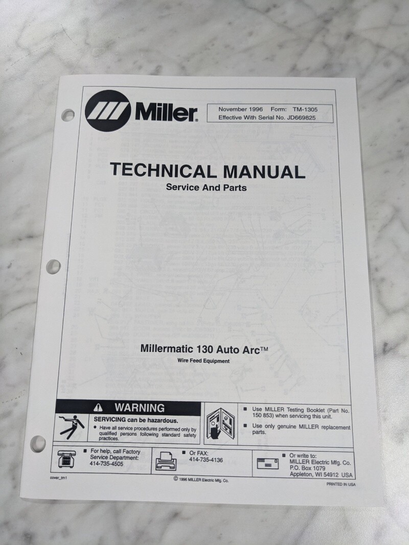 Miller Welder Techinical Service Manual Parts List Millermatic 130 Auto Tm-1305