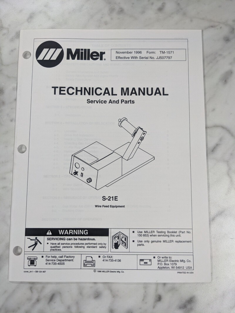 Miller Welder Techinical Service Manual Parts List S-21E Wire Feed Tm-1571 1996
