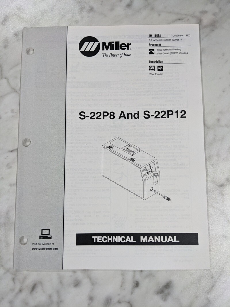 Miller Welder Techinical Service Manual Parts List S-22P8 S-22P12 Tm-1569A 1997