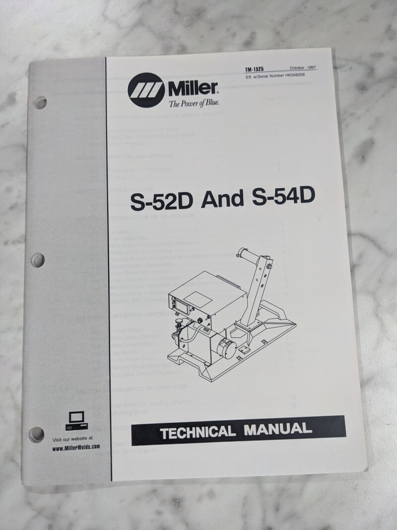 Miller Welder Techinical Service Manual Parts List S-52D S-54D Tm-1525 1997