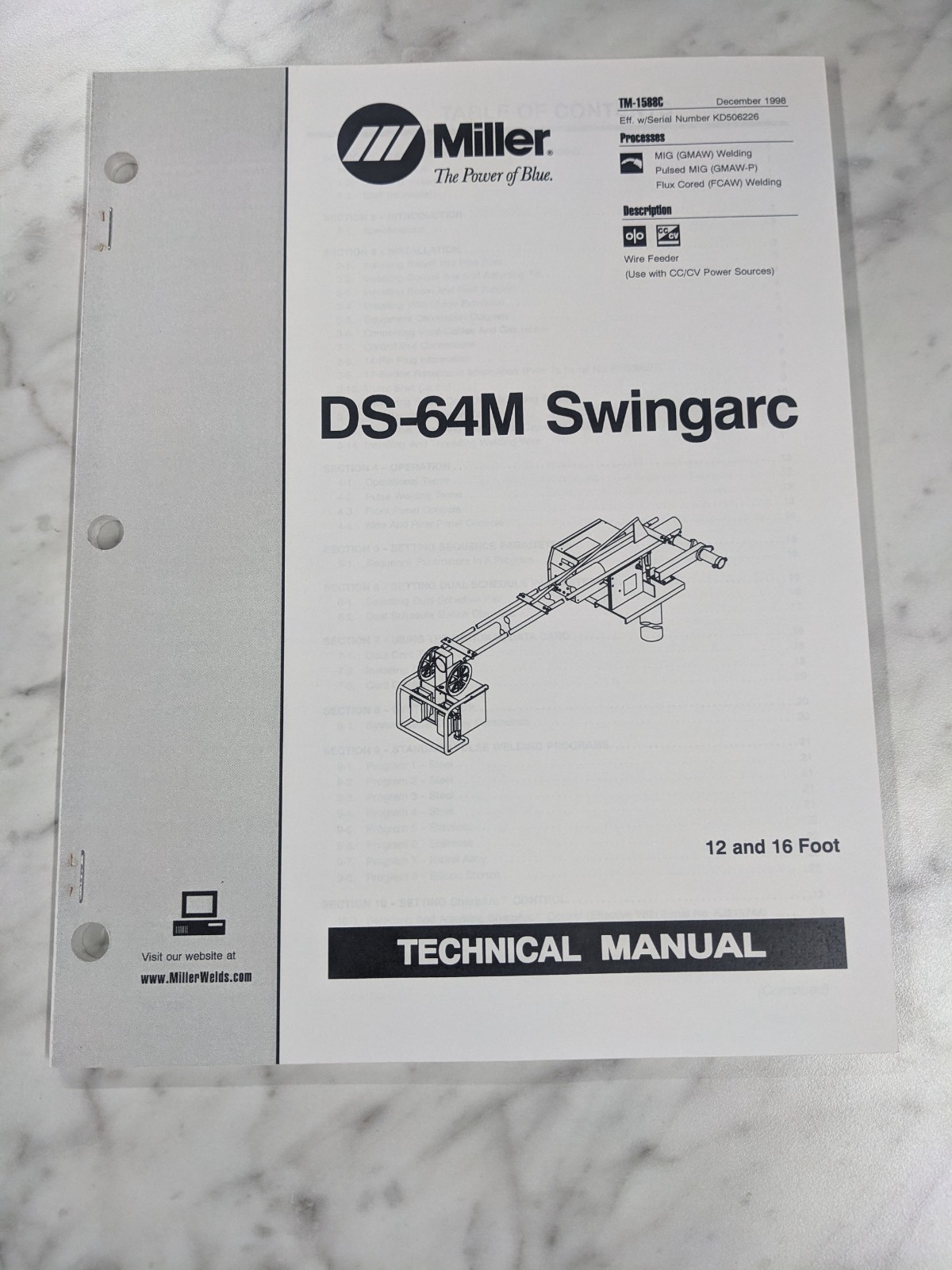 Miller Welder Techinical Service Manual Parts List Swingarc Ds-64M Tm-1588C 1998