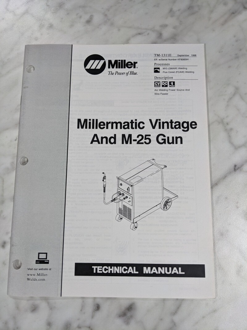 Miller Welder Techinical Service Manual Parts Vintage Millermatic Tm-1311E 1998