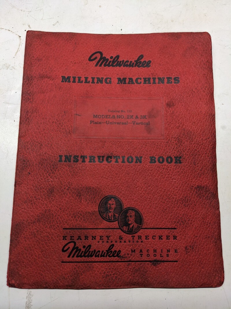 Milwaukee Milling Machines Instruction Book Operation Maintenance # 2K 3K 110
