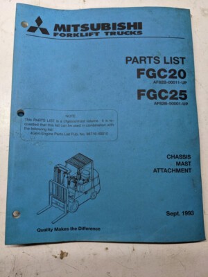 Mitsubishi Fork Lift Truck Service Parts List Book Manual Fgc 20 25 1993