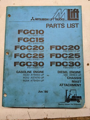 Mitsubishi Forklift Parts List Book Manual Fgc10/15/20/25/30 Fdc20/25/30 1986