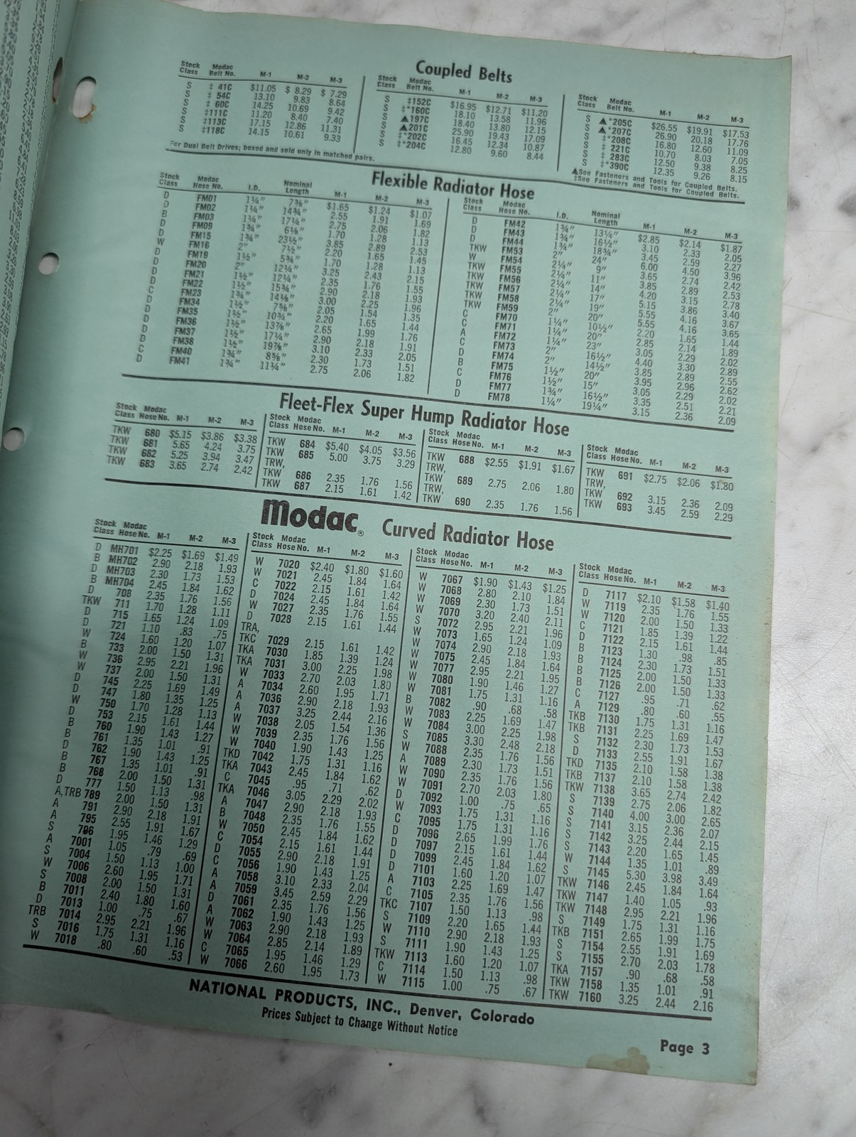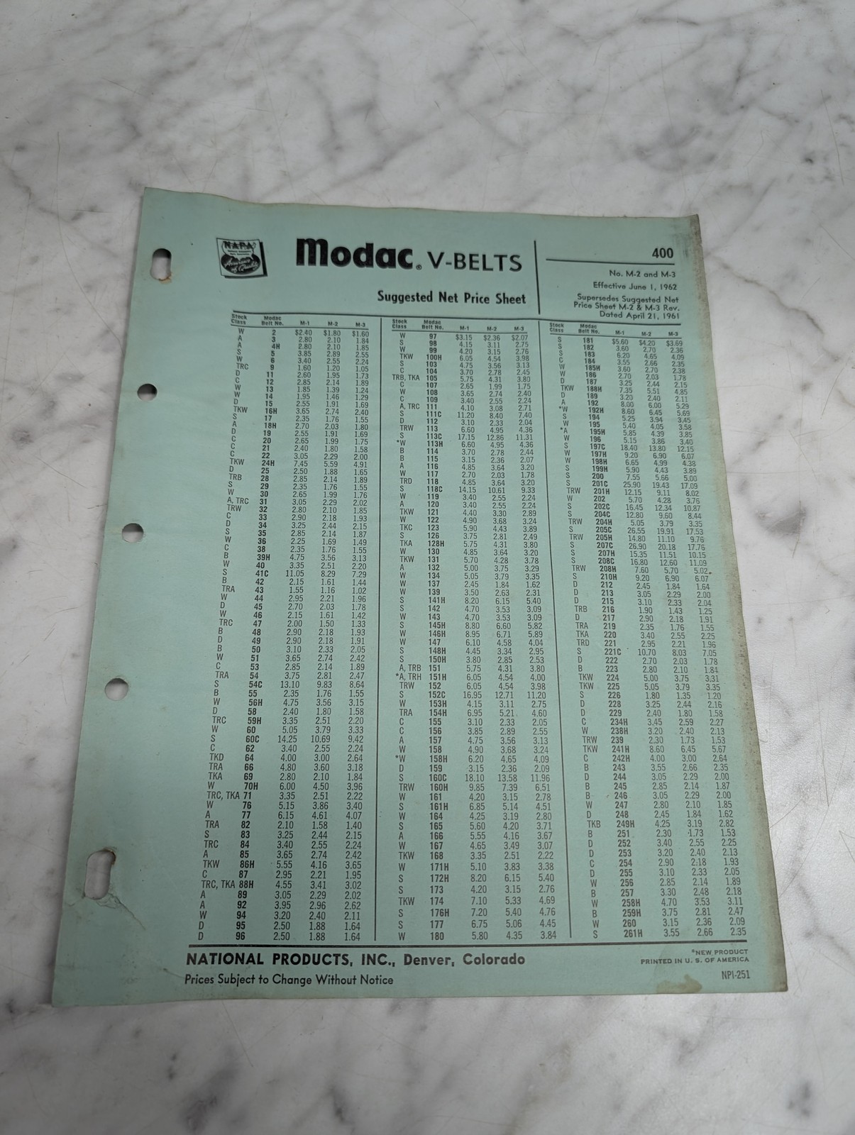 Modac V Belts 400 Suggested Net Price Sheet No M 2 3 Effective June 1 1962