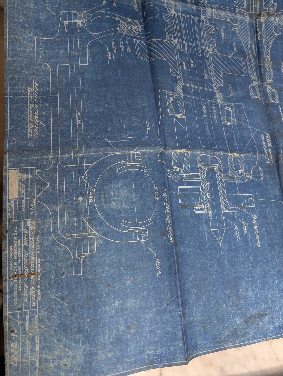 Monarch Machine 16 Speed Headstock N-Nn Assembly Drawing Print Lathe Part #