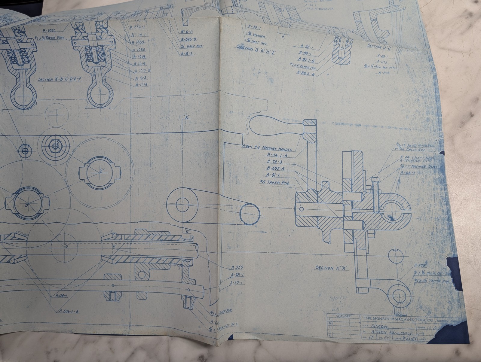 Monarch Machine Apron Assembly Print Drawing Lathe Parts Numbers