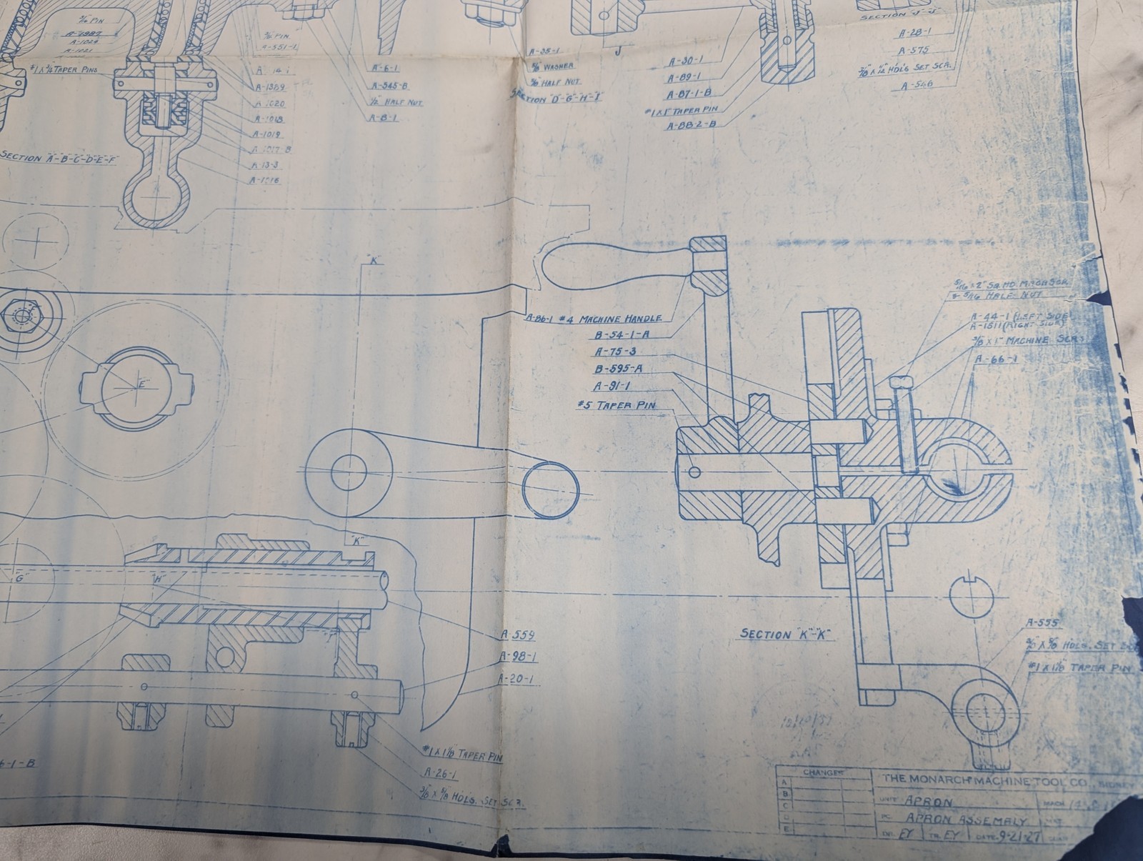 Monarch Machine Tool Lathe Apron Assembly Print Drawing Diagram Parts List 14”