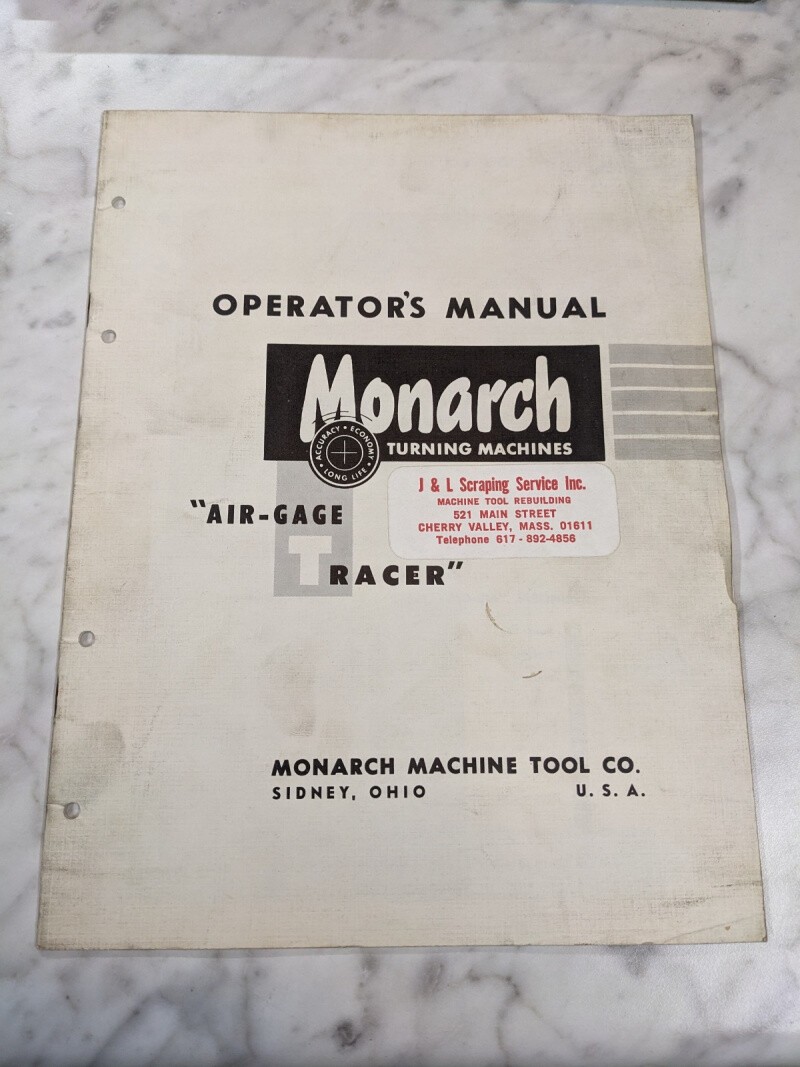 Monarch Operator Controls Manual Air-Gage Tracer For Lathes Turning 1957 Tool