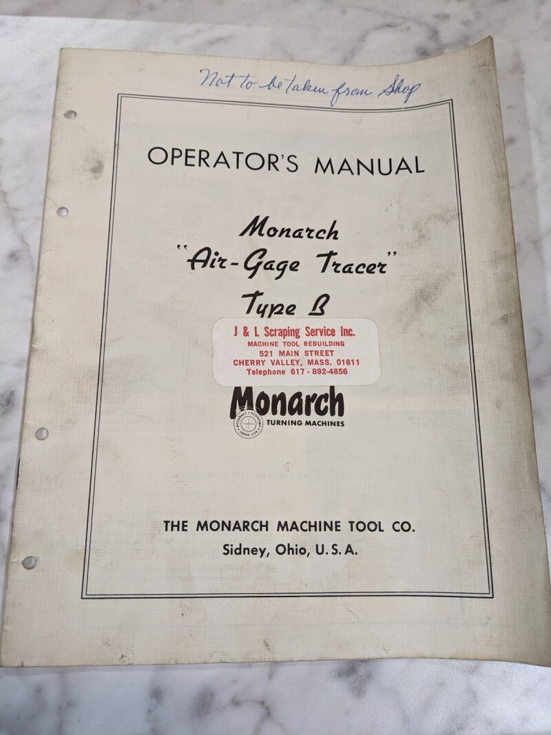 Monarch Operator Controls Manual Air-Gage Type B Tracer Lathe Turning 1959 Mach