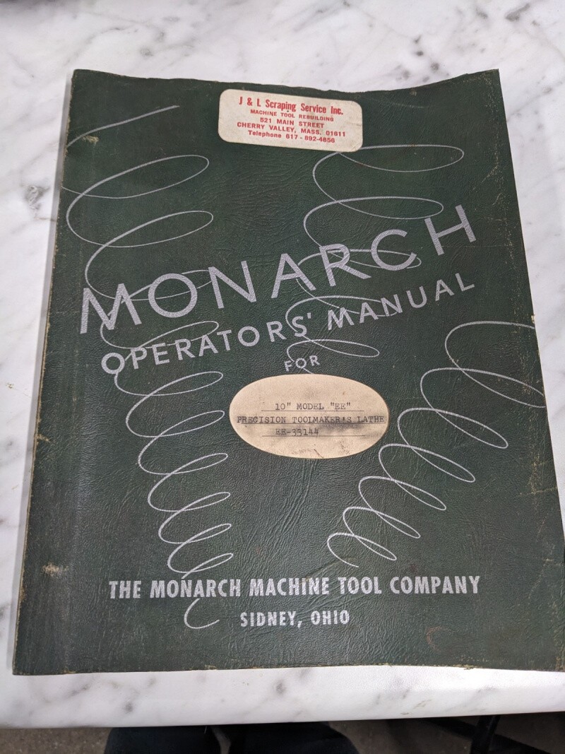 Monarch Operator Manual Service Parts List Book Engine Lathe 10” Ee-33144