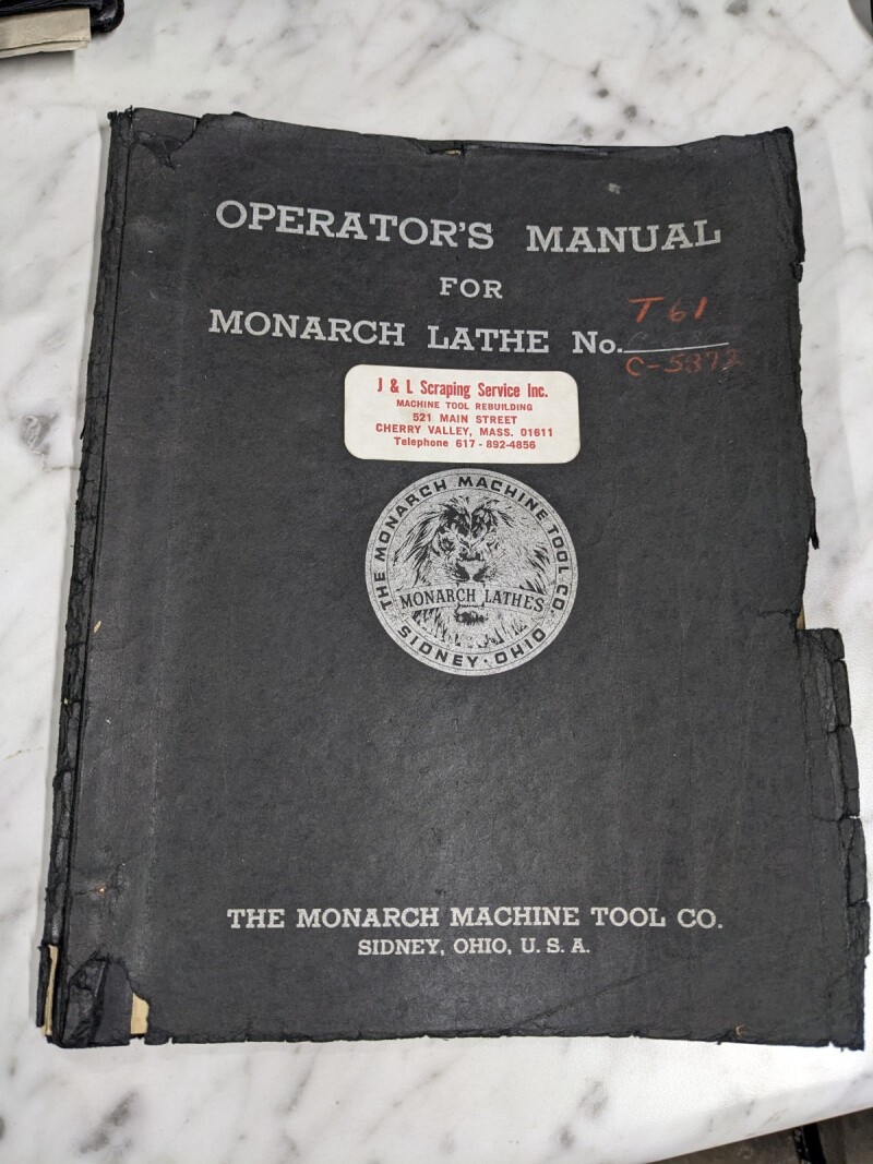 Monarch Operator Manual Service Parts List Book Engine Lathe C-5872 T61
