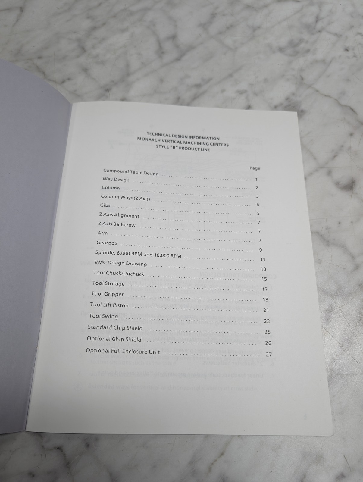 Monarch Vertical Machining Centers Technical Design Information Style B Manual