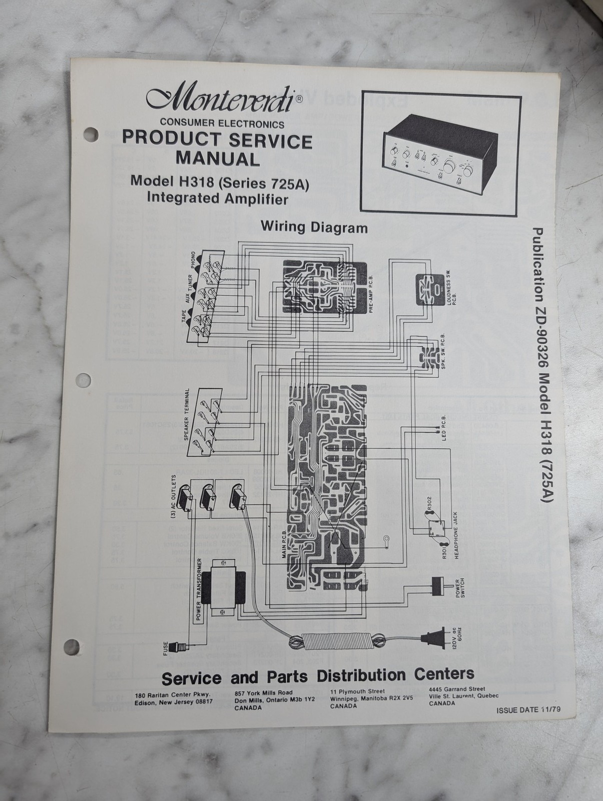 Monteverdi Service Manual Repair Parts List Integrated Amplifier H318 725A 1979