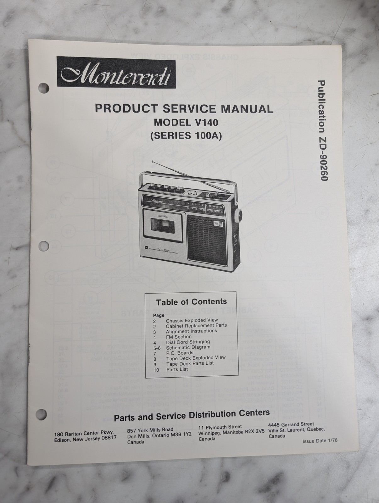 Monteverdi Service Manual Repair Parts List Radio Stereo Portable V140 100A