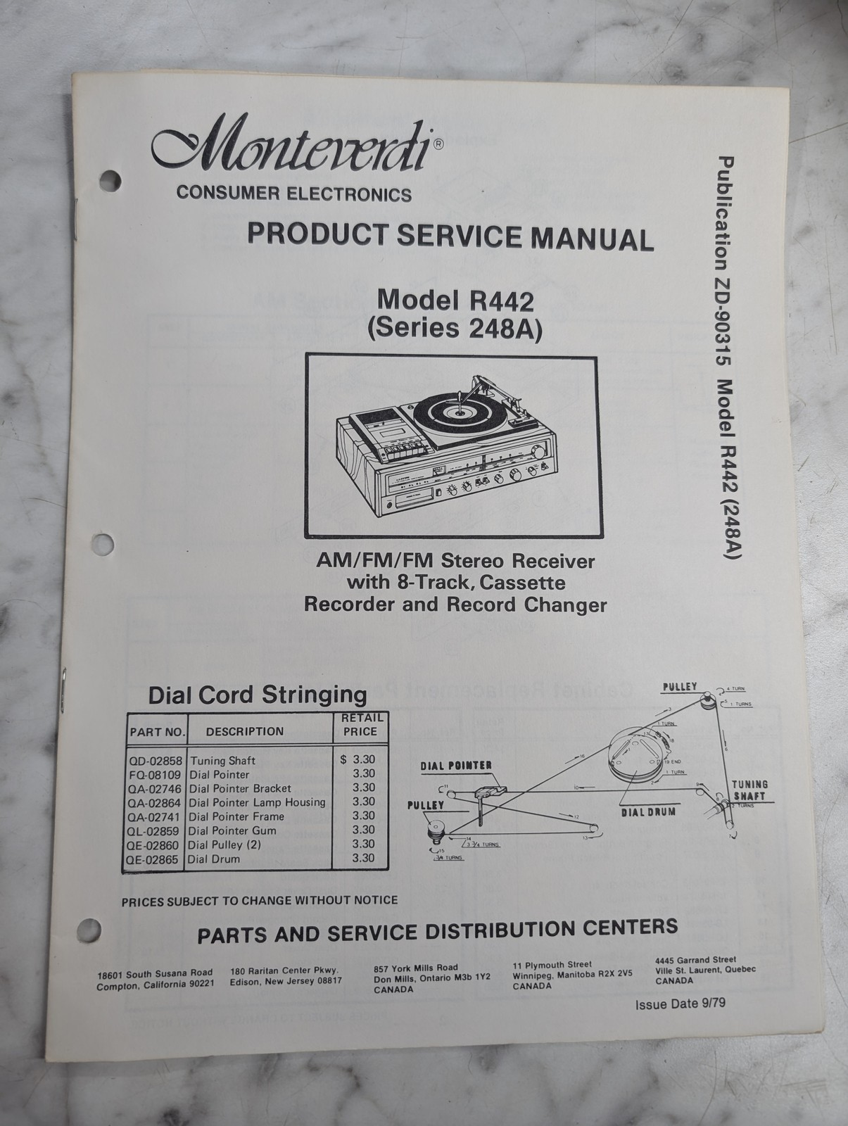 Monteverdi Service Manual Repair Parts List Radio Stereo Receiver R442 248A 1979