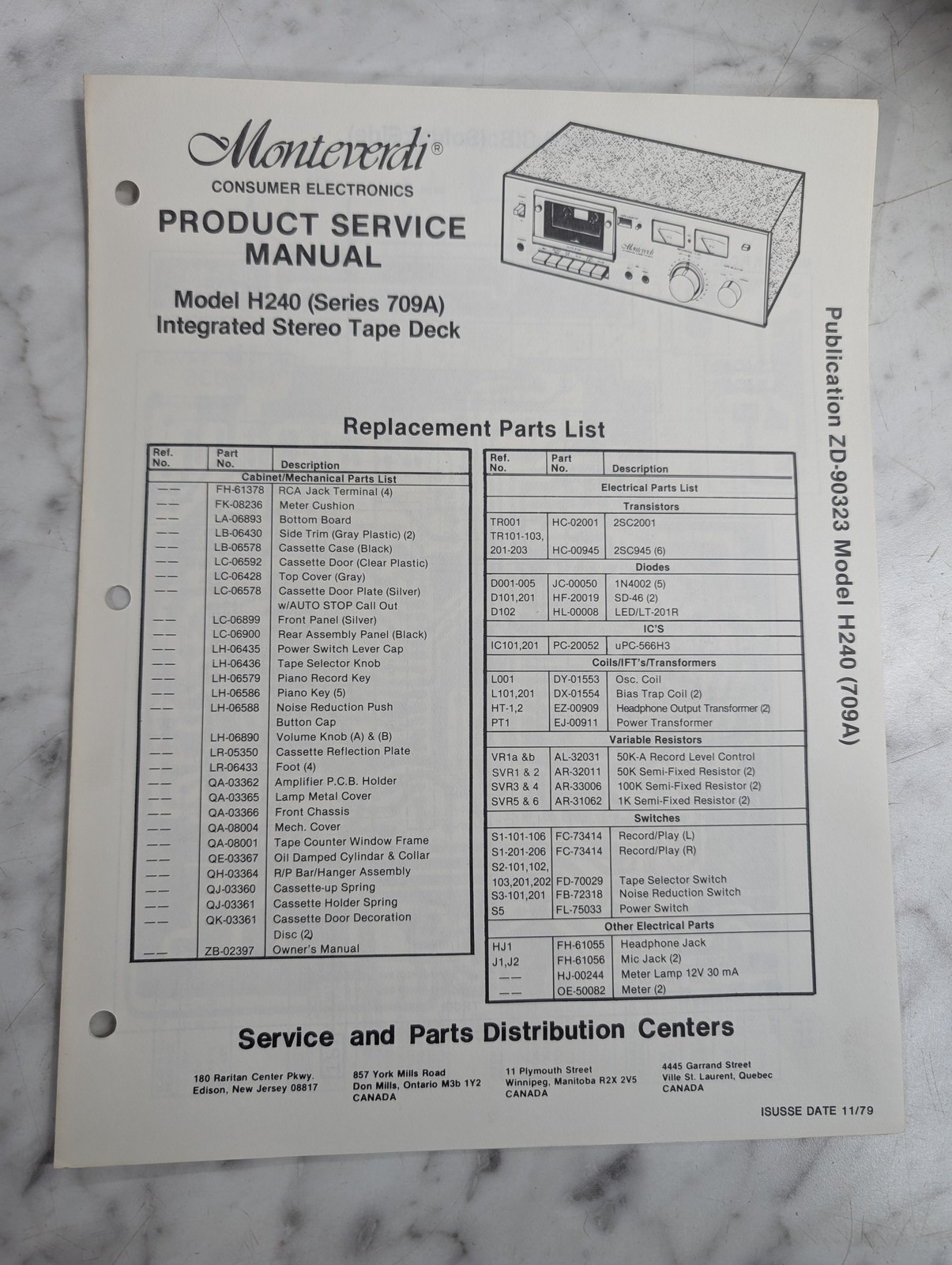 Monteverdi Service Manual Repair Parts List Radio Stereo Tapedeck H240 709A 1979