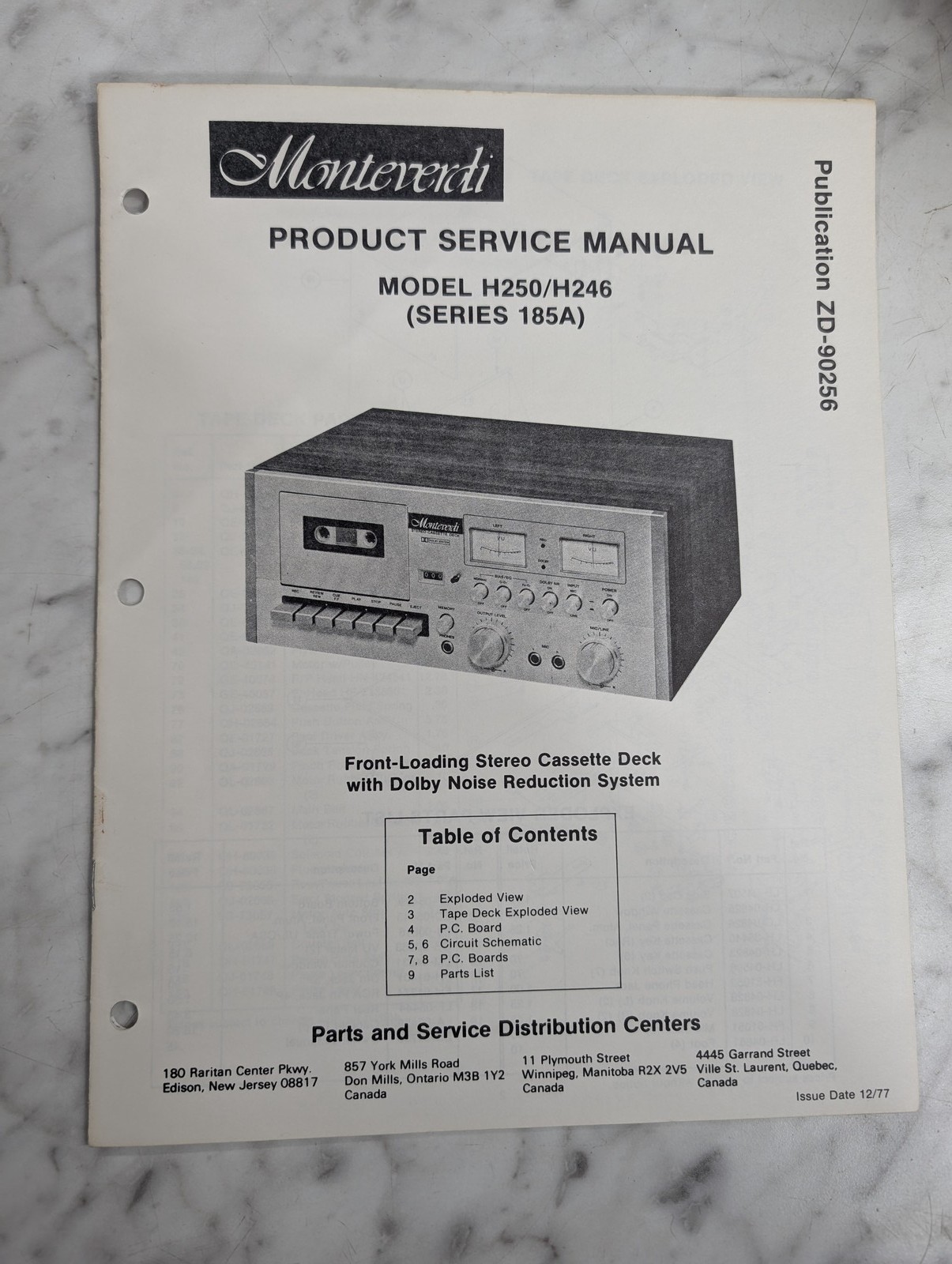 Monteverdi Service Manual Repair Parts List Stereo Tape Deck H250 H246 185A