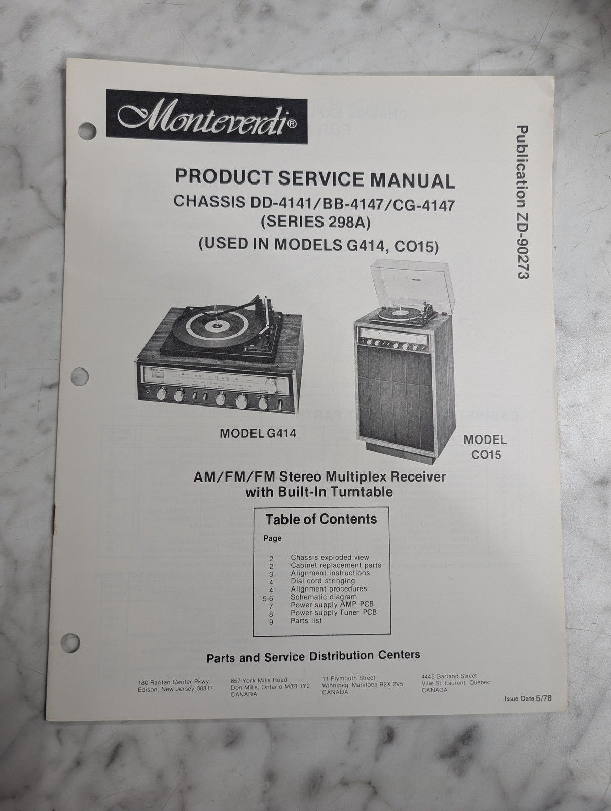Monteverdi Service Manual Repair Parts Radio Record Dd-4141 Bb-4147 Cg-4147 298A