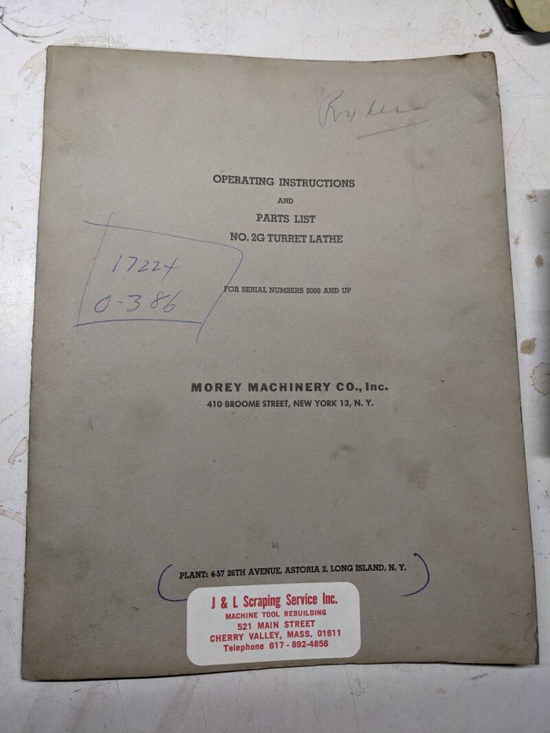 Morey Machinery Operator Service Manual Parts List 2G Turret Lathe Machine 1943
