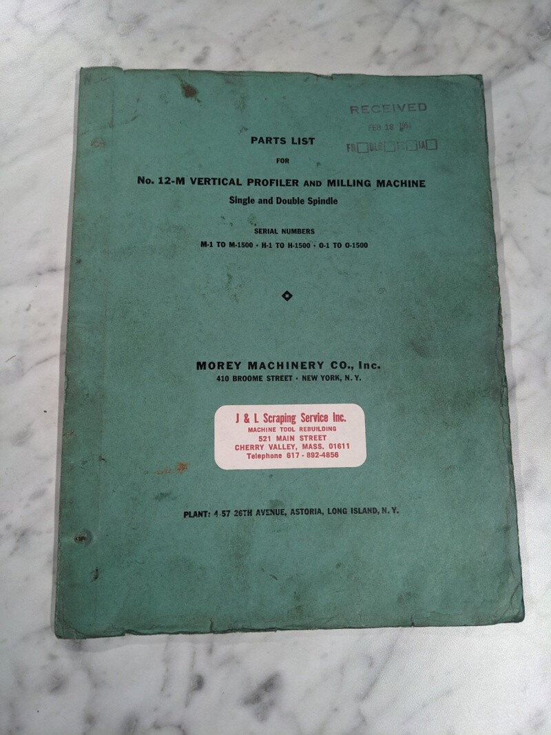 Morey Machinery Service Parts List Book Manual Catalog #12-M Vertical Milling