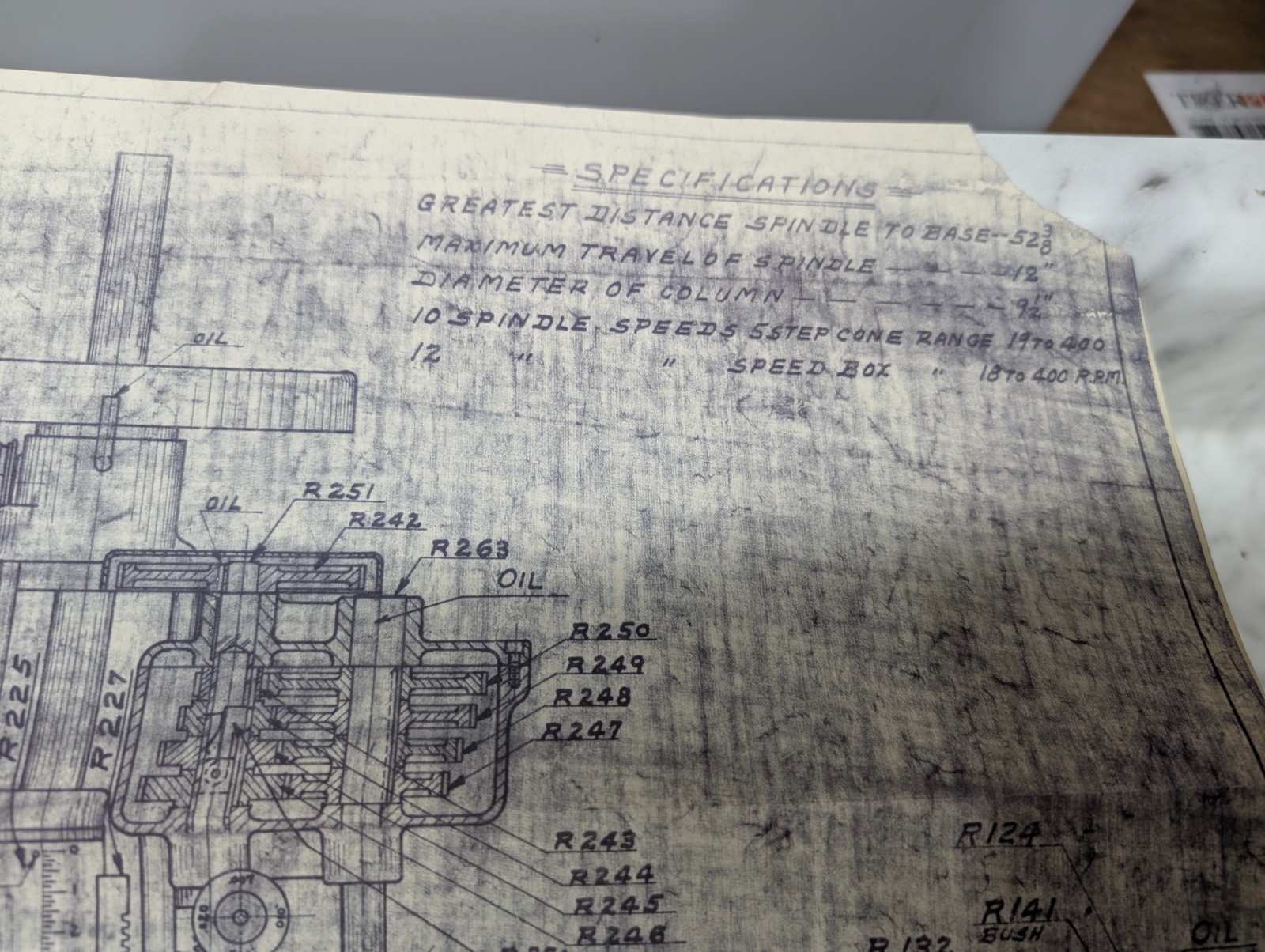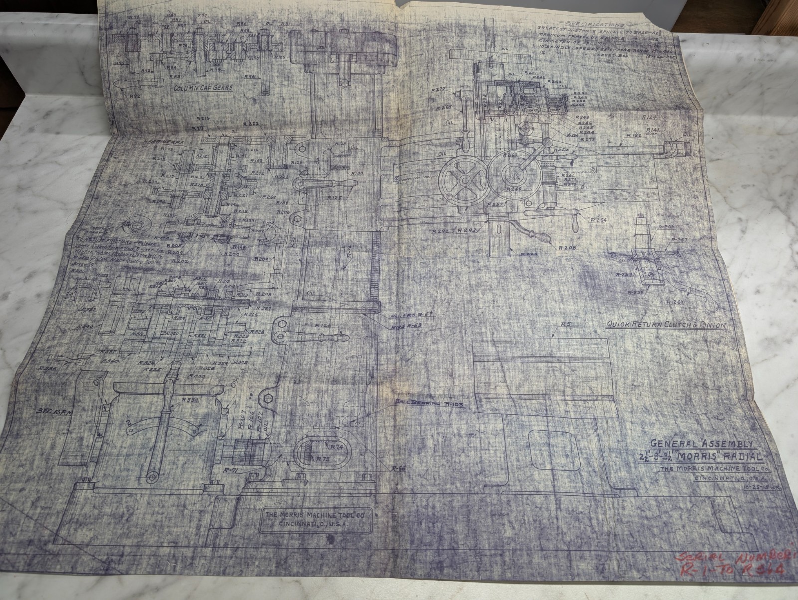 Morris Radial Drill Machine Tool General Assembly Drawing Print Layout