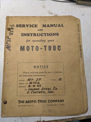 Moto-Truc Service Manual Instructions Parts List Book Mtsp8706 Mt-Sp