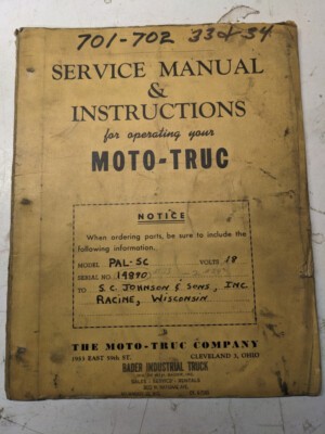 Moto-Truc Service Repair Manual Parts List Shop Book Forklift Truck Pal Sc