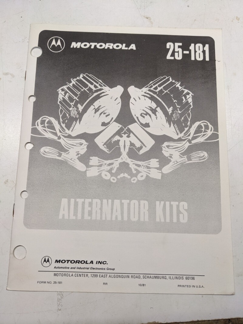 Motorola Automotive Alternator Kits Catalog Booklet Manual 25-181 1981