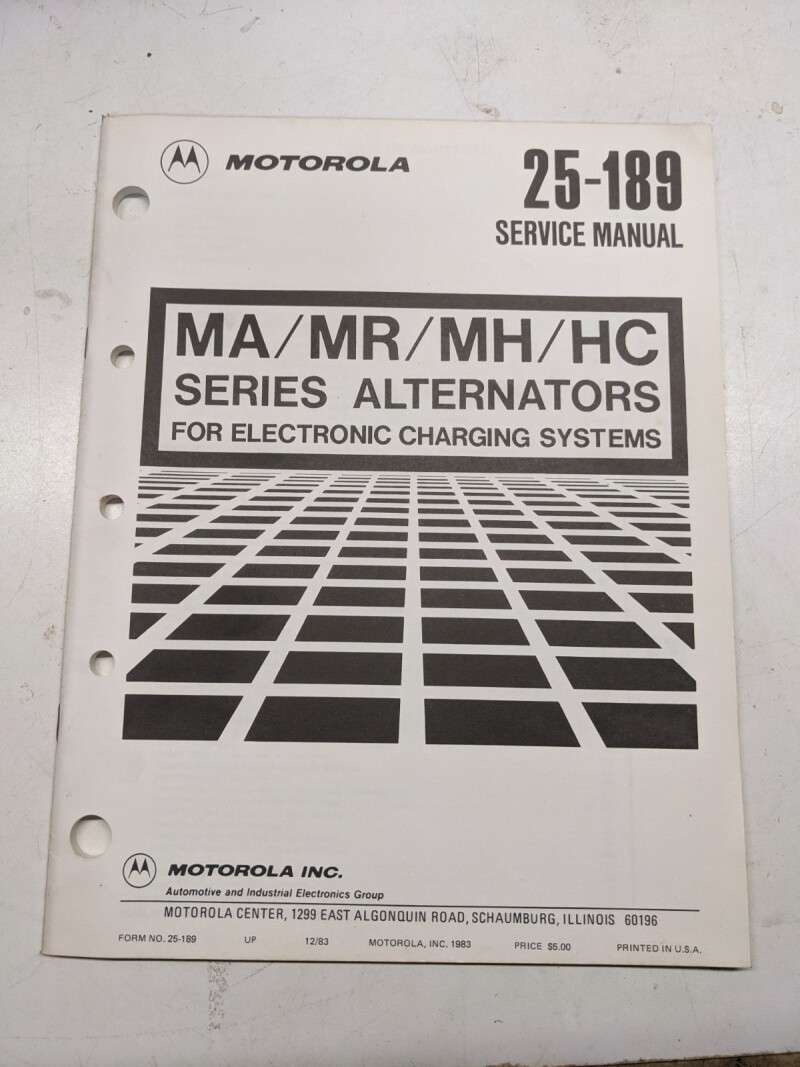 Motorola Automotive Service Manual Alternator Series Ma Mr Mh Hc 25-189 1983