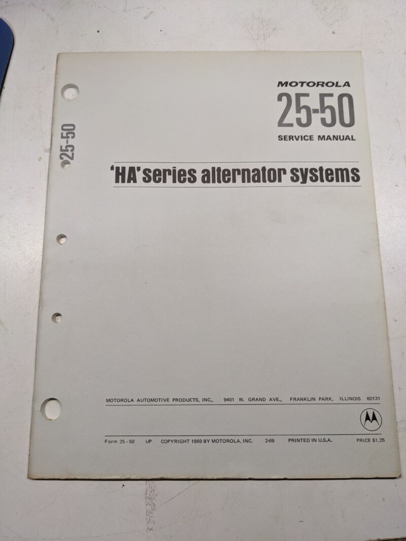 Motorola Automotive Service Repair Manual Book Alternator Series Ha 25-50 1969