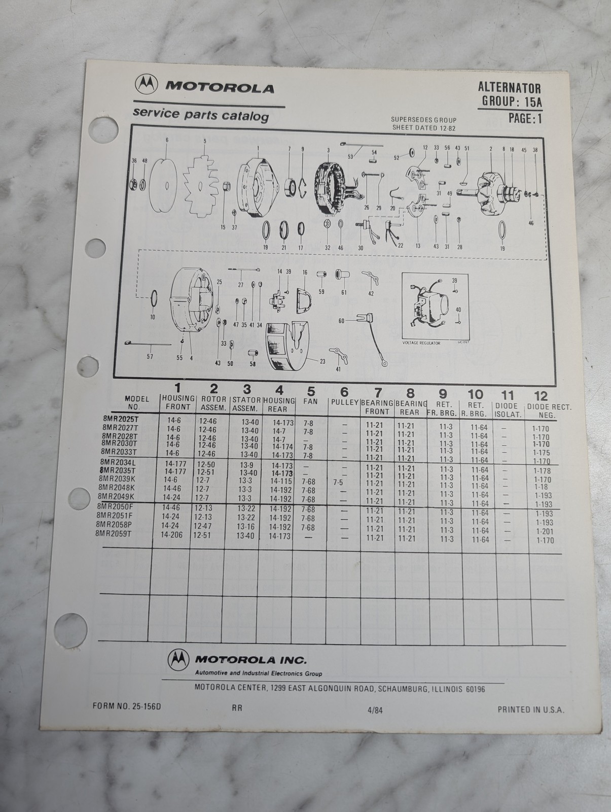 Motorola Service Repair Parts Catalog List Book Manual Alternator Group 15A 1984