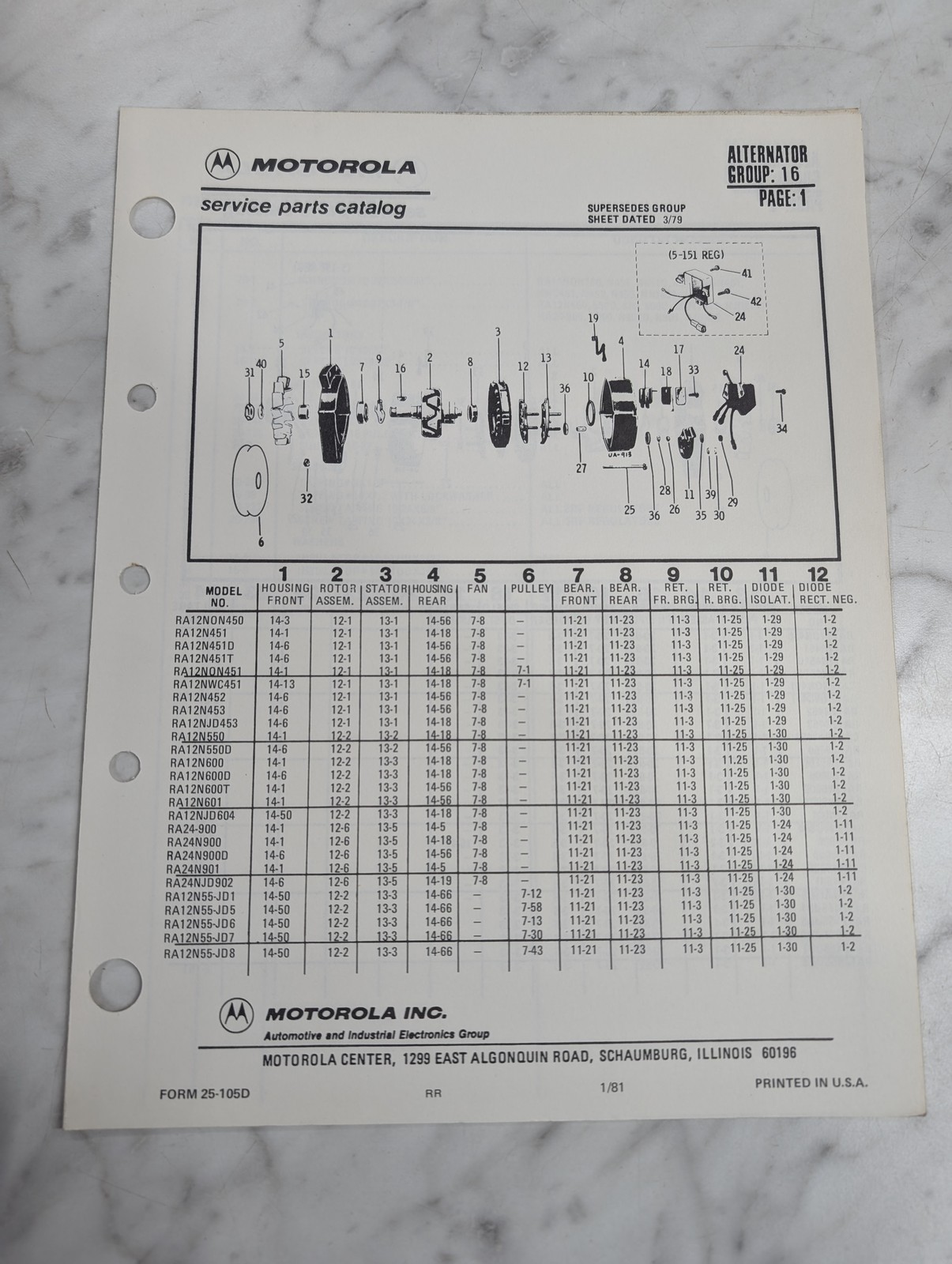 Motorola Service Repair Parts Catalog List Book Manual Alternator Group 16 1981