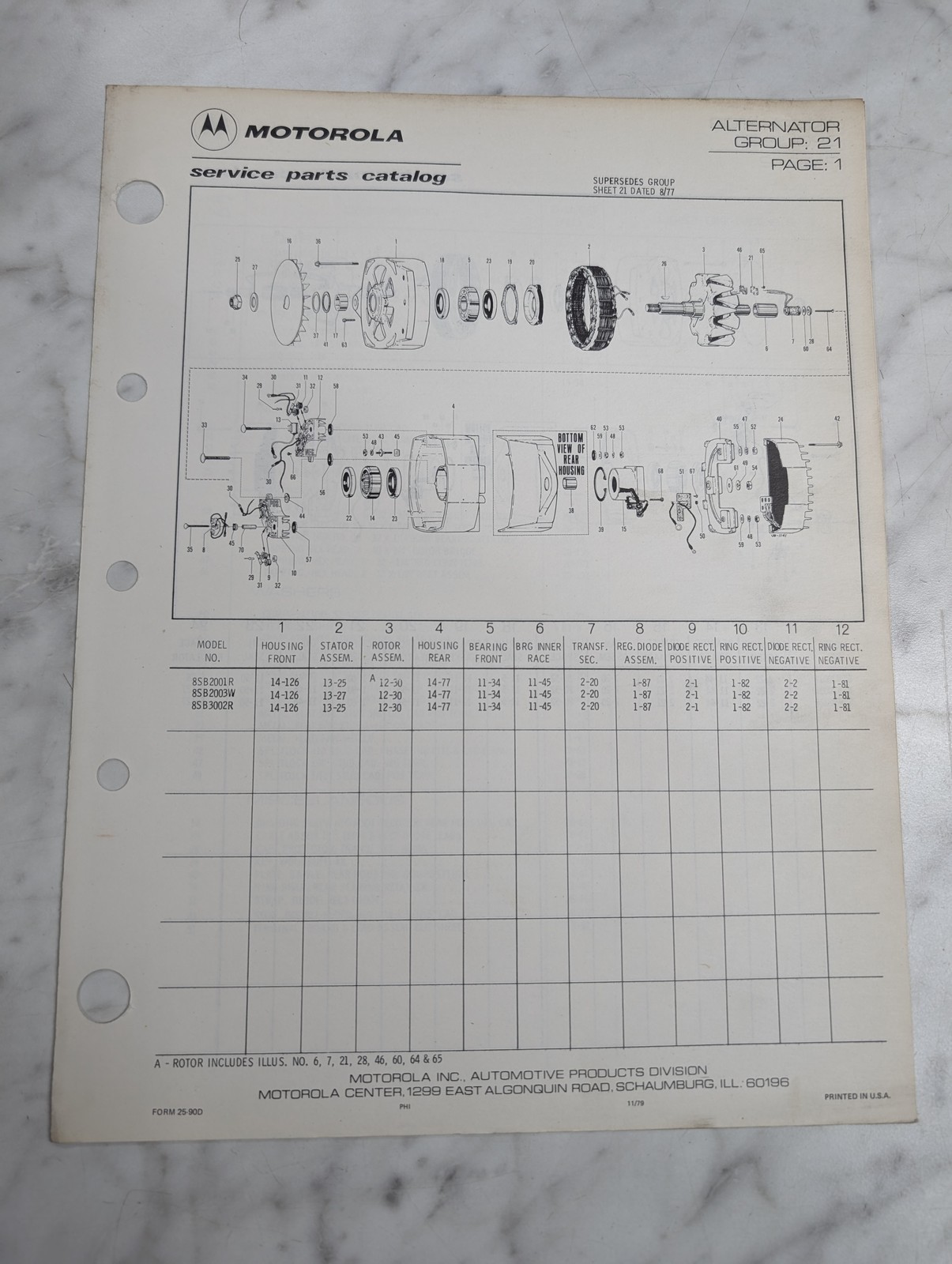 Motorola Service Repair Parts Catalog List Book Manual Alternator Group 21 1979