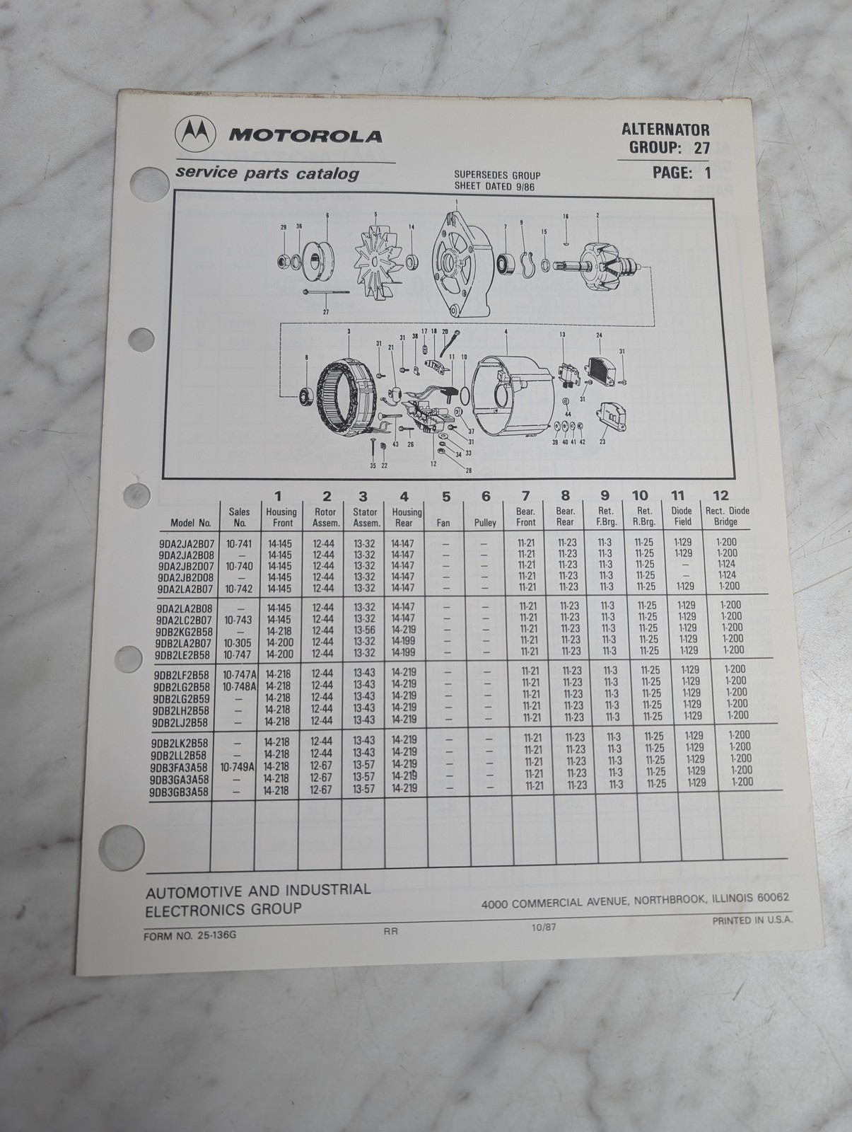 Motorola Service Repair Parts Catalog List Book Manual Alternator Group 27 1987