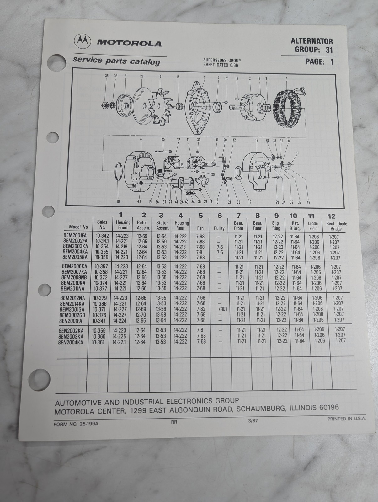 Motorola Service Repair Parts Catalog List Book Manual Alternator Group 31 1987