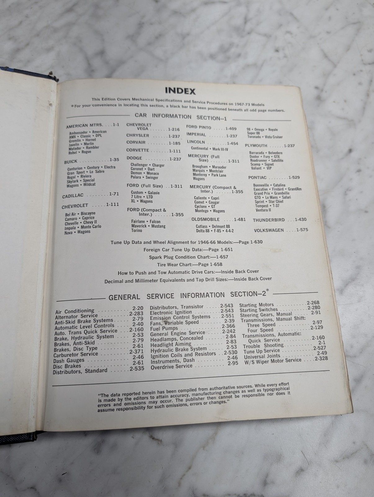 Motor’S Auto Repair Manual Service Maintenance Shop 1973 36Th