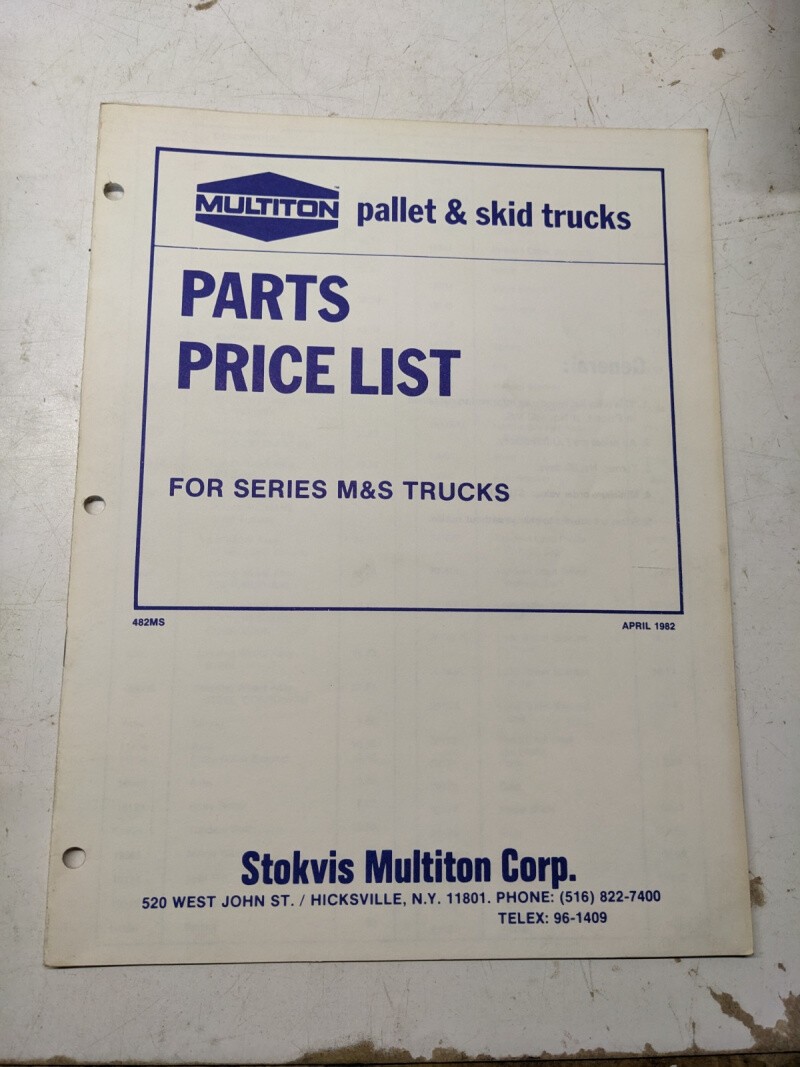 Multiton M & S Series Truck Parts Price List 1982 482Ms Dealer Sales Manual Book