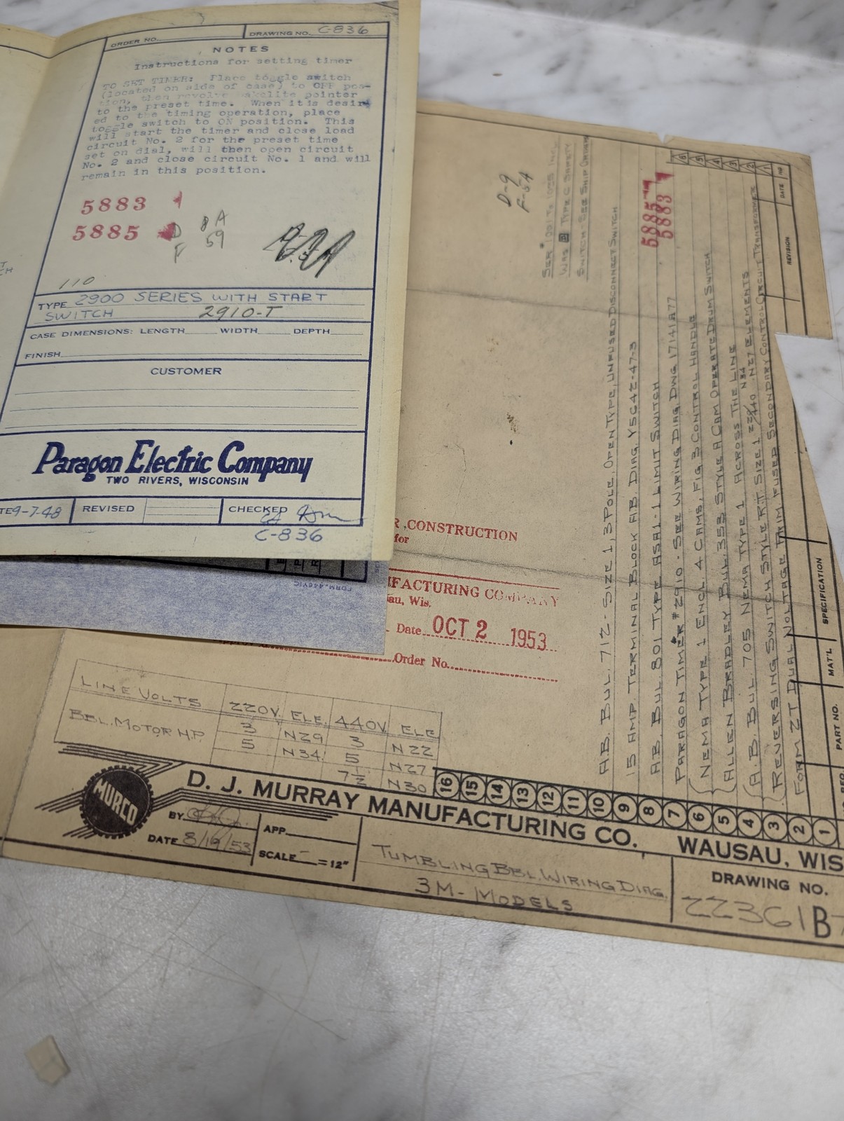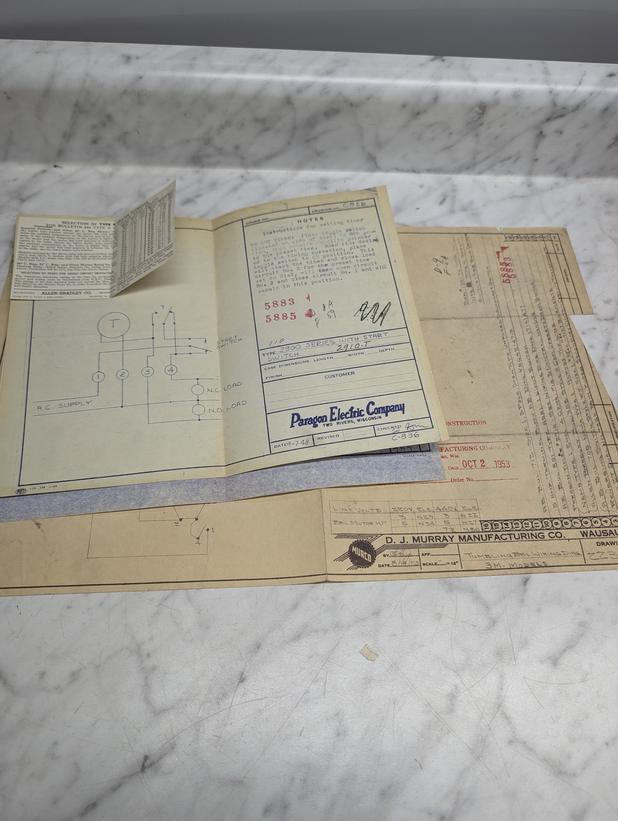 Murco Murray Paragon Electric 2900 Series Start Switch Drawing C836 Instruction
