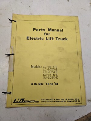 Namco Parts List Book Manual Lc 1815 2020 2024 1515 Su E Forklift 1978-1981