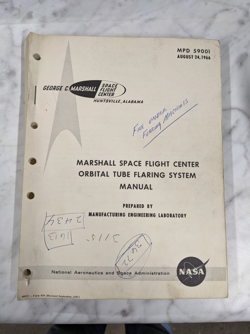 Nasa 1966 Marshall Space Flight Center Orbital Tube Flaring System Manual Parts