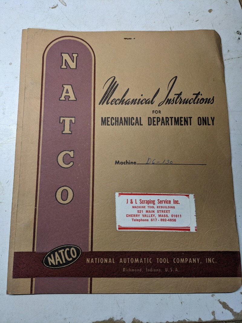 Natco Automatic Tool Operator Service Manual D6-130 Drill Tapping Machine